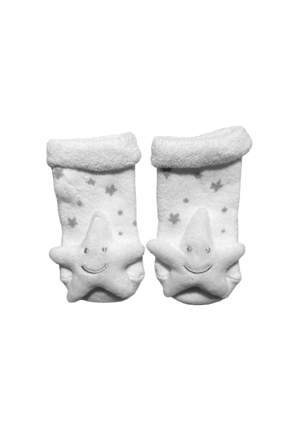 I Calzini bianchi Losan per neonato con stellina sonaglio integrato sono il dettaglio tenero e funzionale che conquista mamme e papà. Realizzati in tessuto caldo e soffice, sono ideali per tenere al caldo i piedini dei più piccoli e stimolare la loro curiosità con un suono delicato ad ogni movimento.