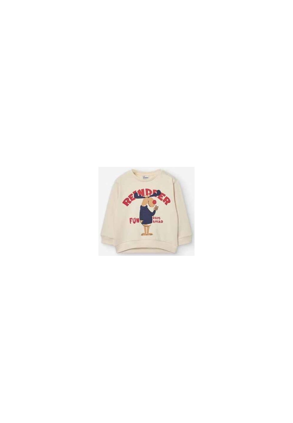 Questa adorabile felpa beige, disponibile nelle taglie dai 6/9 mesi ai 24/36 mesi, è perfetta per aggiungere un tocco di magia alle giornate invernali e natalizie. La stampa frontale di una simpatica renna, con il suo naso rosso e il messaggio “FUN DAYS AHEAD', farà sorridere ogni bambino. Realizzata in morbido tessuto felpato che rimane soffice all’interno, questa felpa offre calore e comfort ideali per le fredde giornate invernali. I due pratici bottoni automatici sulla spalla rendono facile indossarla e toglierla, aggiungendo un tocco di praticità a questo capo festivo. Perfetta per le feste di Natale o per qualsiasi giornata invernale, questa felpa sarà sicuramente un successo tra i più piccoli!