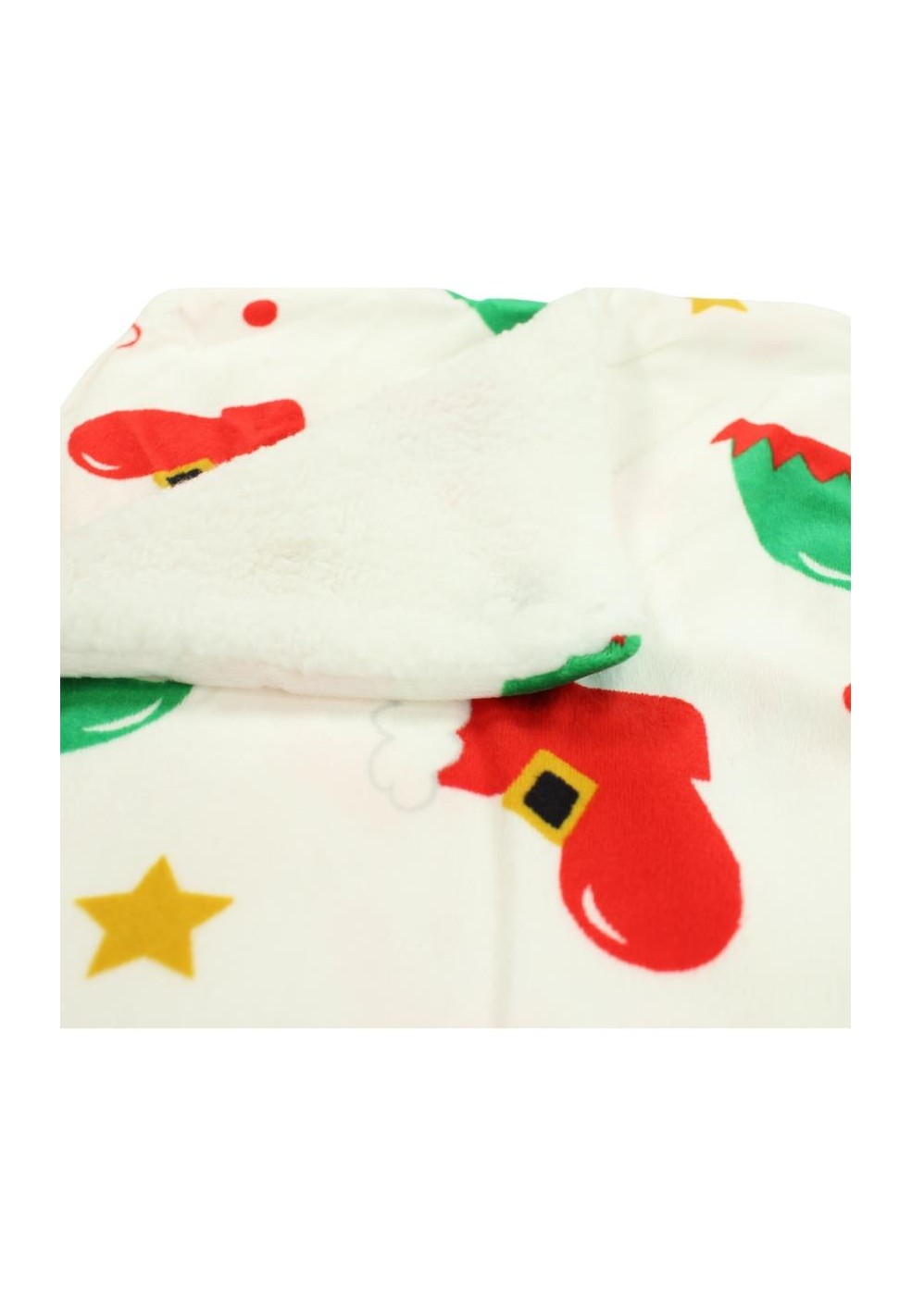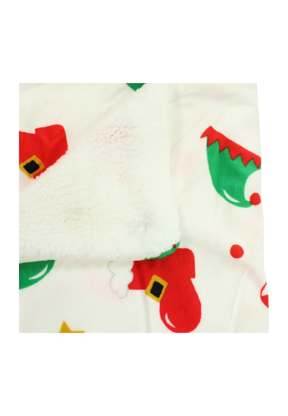 Copertina in pile soffice con stampa festiva e interno sherpa ultra caldo. Ideale per coccolare grandi e piccini durante le feste, sul divano o in viaggio.