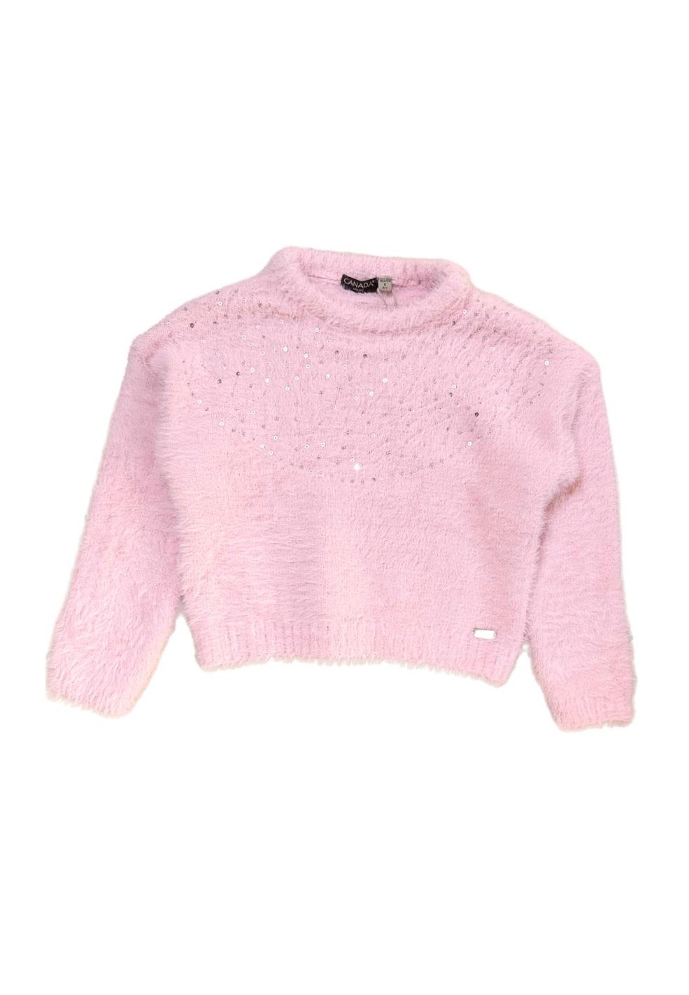 Scopri il nostro maglioncino morbidissimo da bambina o ragazza, colore rosa delicato, impreziosito da scintillanti strass argento sul davanti. Perfetto per un look casual chic, questo pullover unisce comfort e stile. Ideale per ogni stagione, disponibile in diverse taglie.
