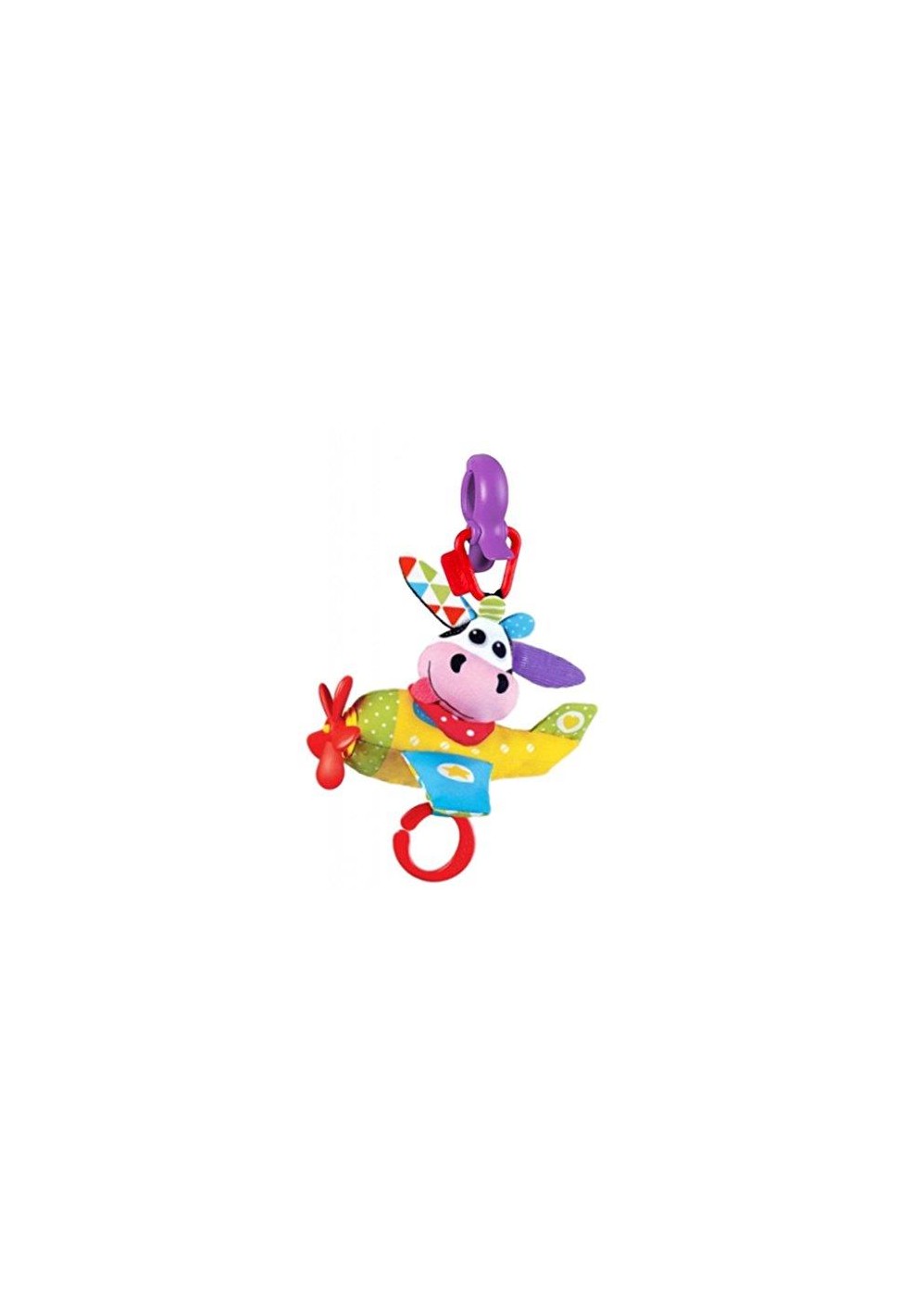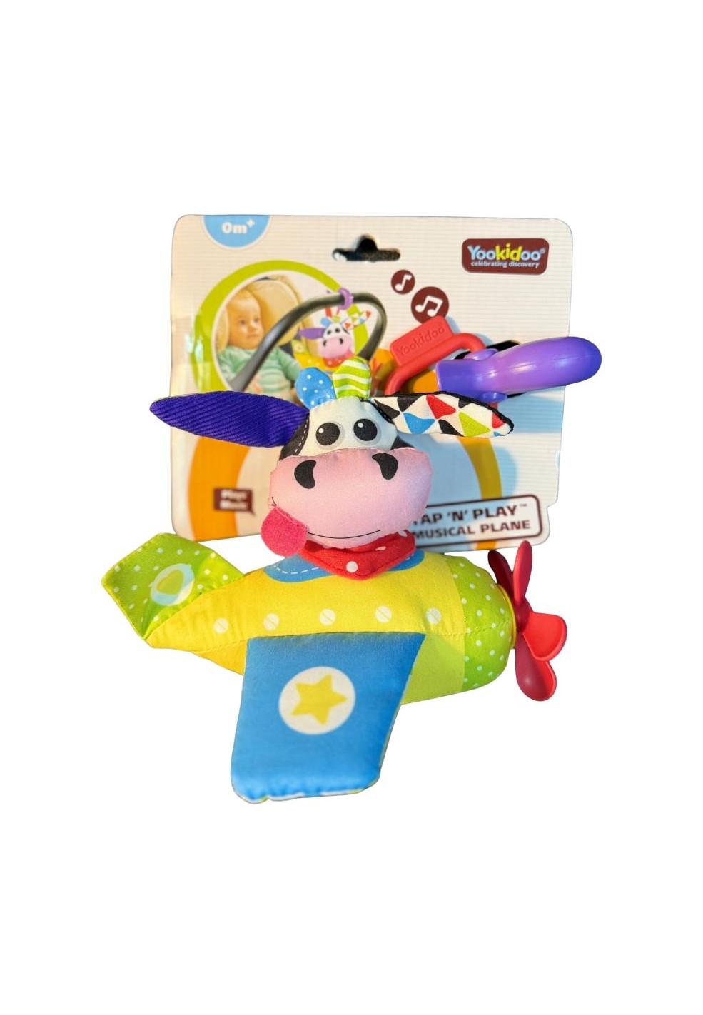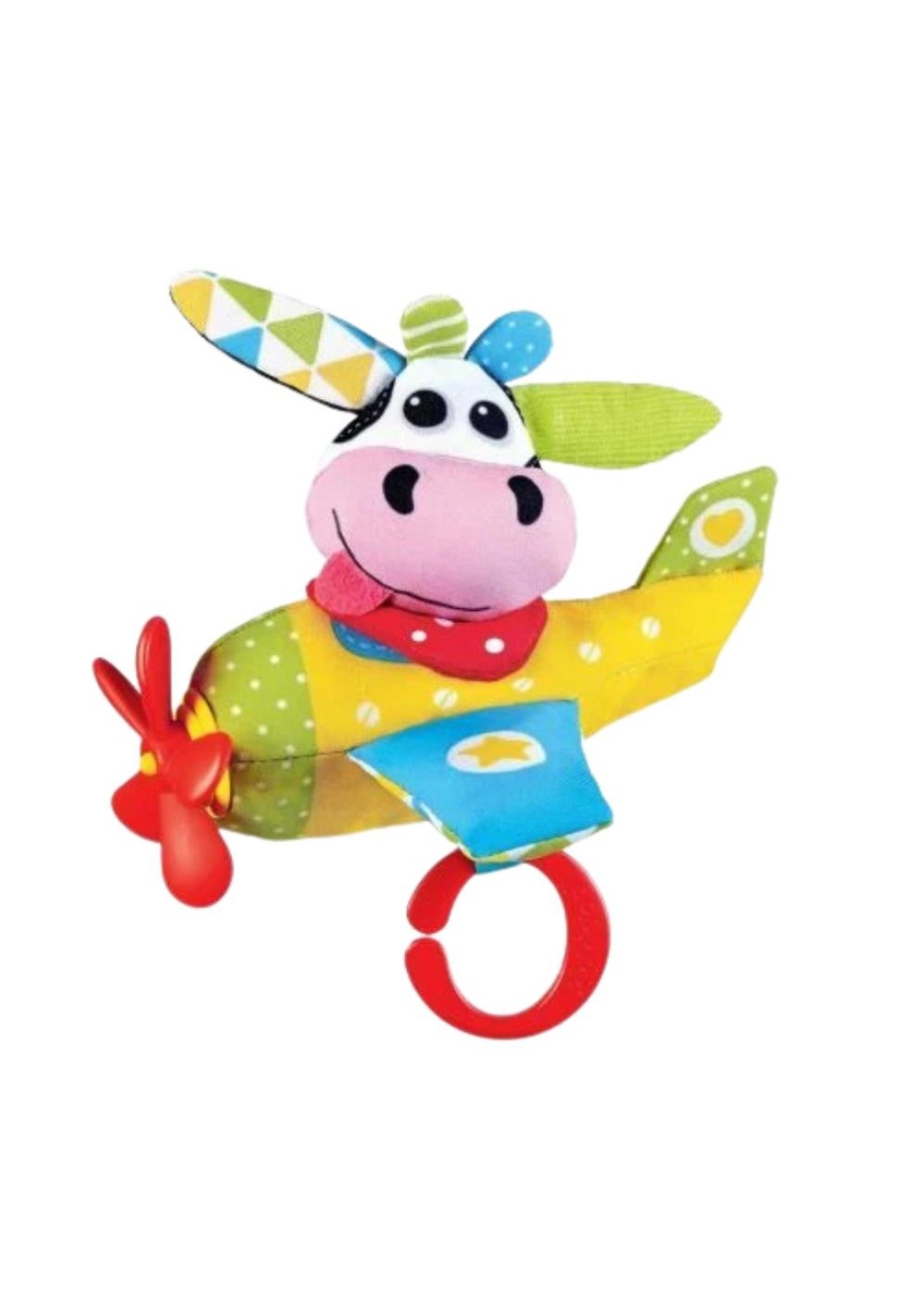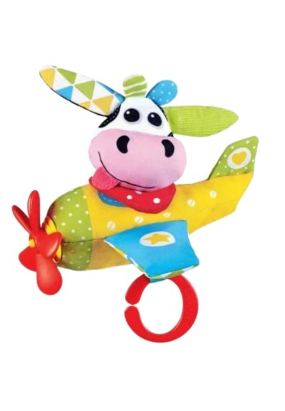 Un tenero aeroplano con faccia da mucca, dotato di movimento automatico a batteria, ritorno musicale e propulsore rotante. Il piccolo pilota a bordo accompagna ogni viaggio con allegria. Si aggancia facilmente a passeggini, lettini e seggiolini. Un mondo di stimoli per i sensi e la fantasia!