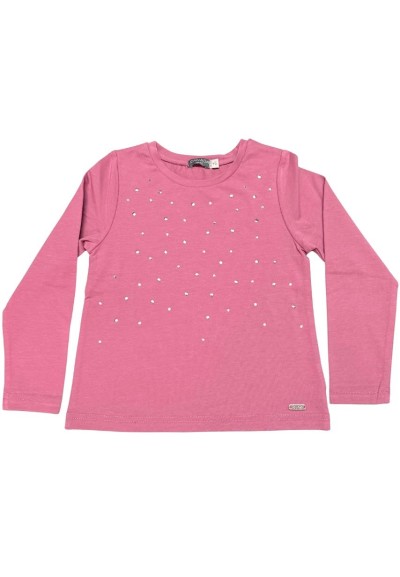 Maglietta Manica Lunga Bambina o ragazza in Cotone Elasticizzato Rosa Antico con Strass