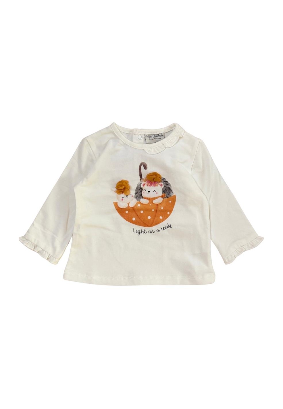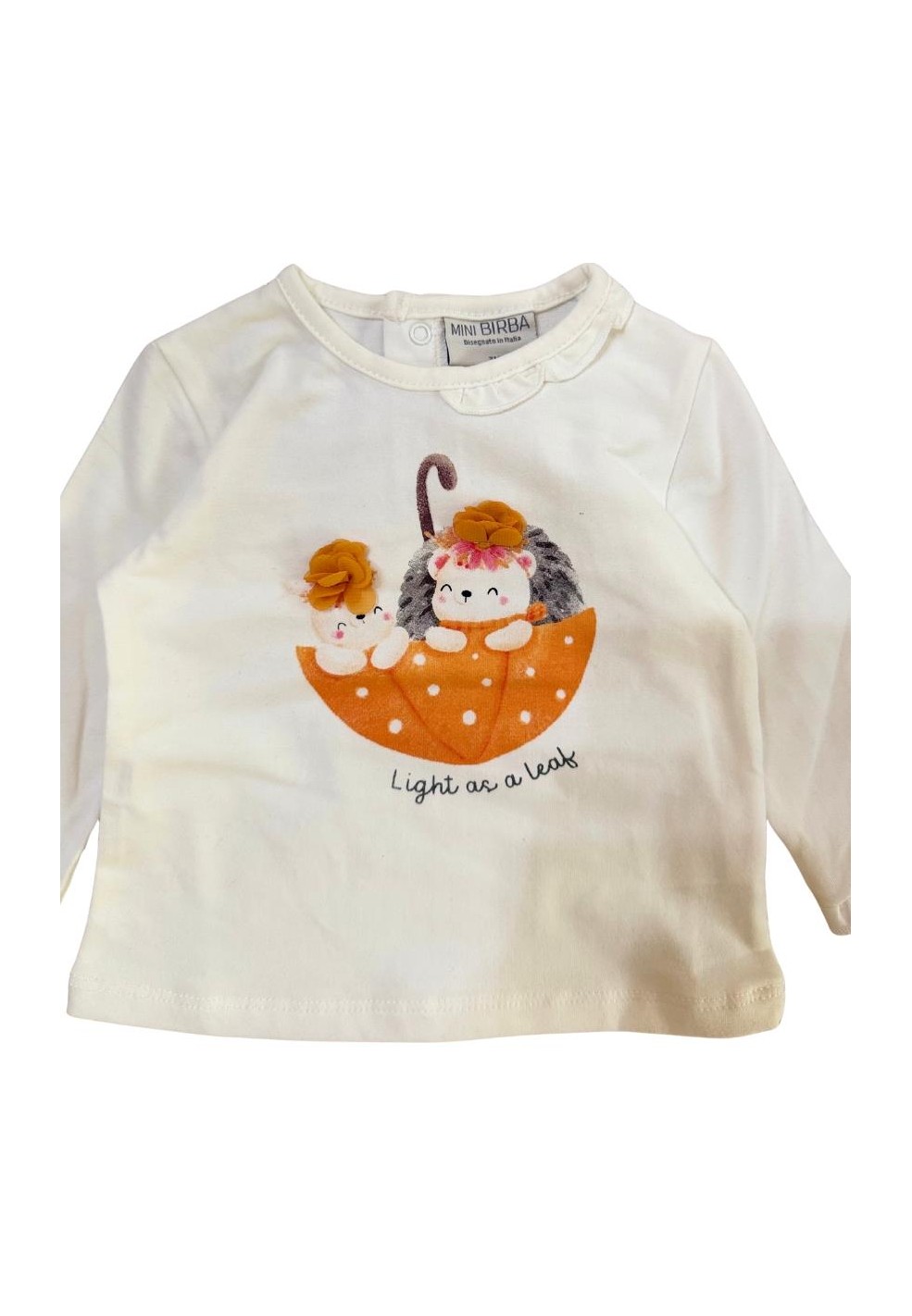 Sul davanti, una stampa illustrata con un riccio e un gattino che si riparano sotto un ombrello arancione a pois regala un sorriso a ogni sguardo. I dettagli floreali e la frase “Light as a leaf' completano il quadro con poesia. Ideale per l’autunno e la primavera, questa t-shirt neonato con stampa tenera si abbina perfettamente a leggings, salopette o pantaloni in felpa.