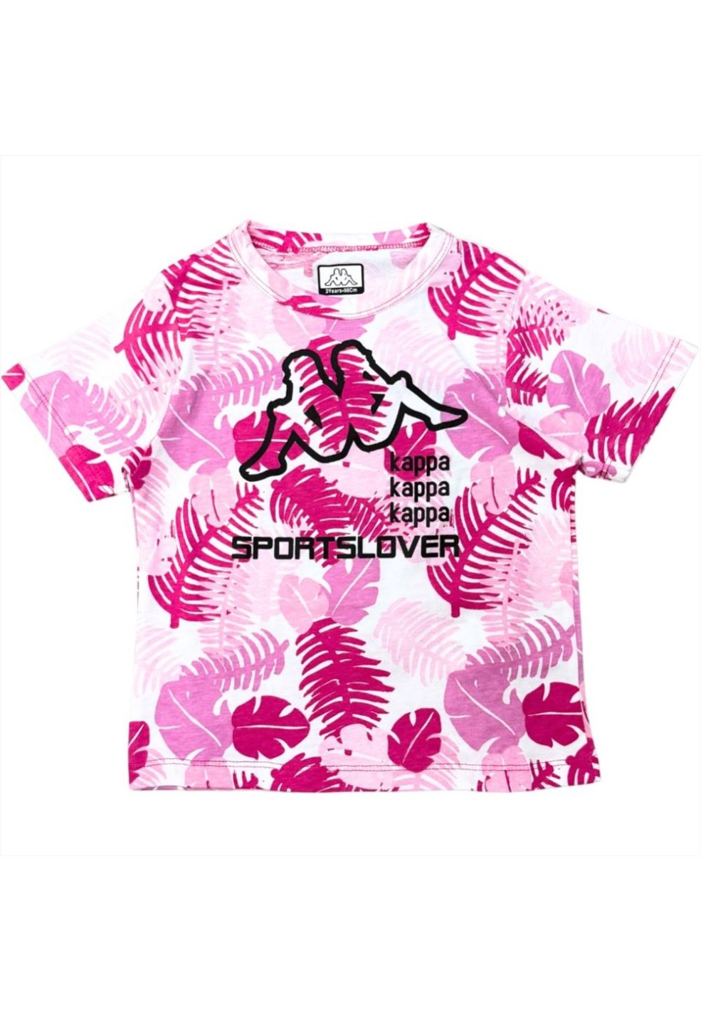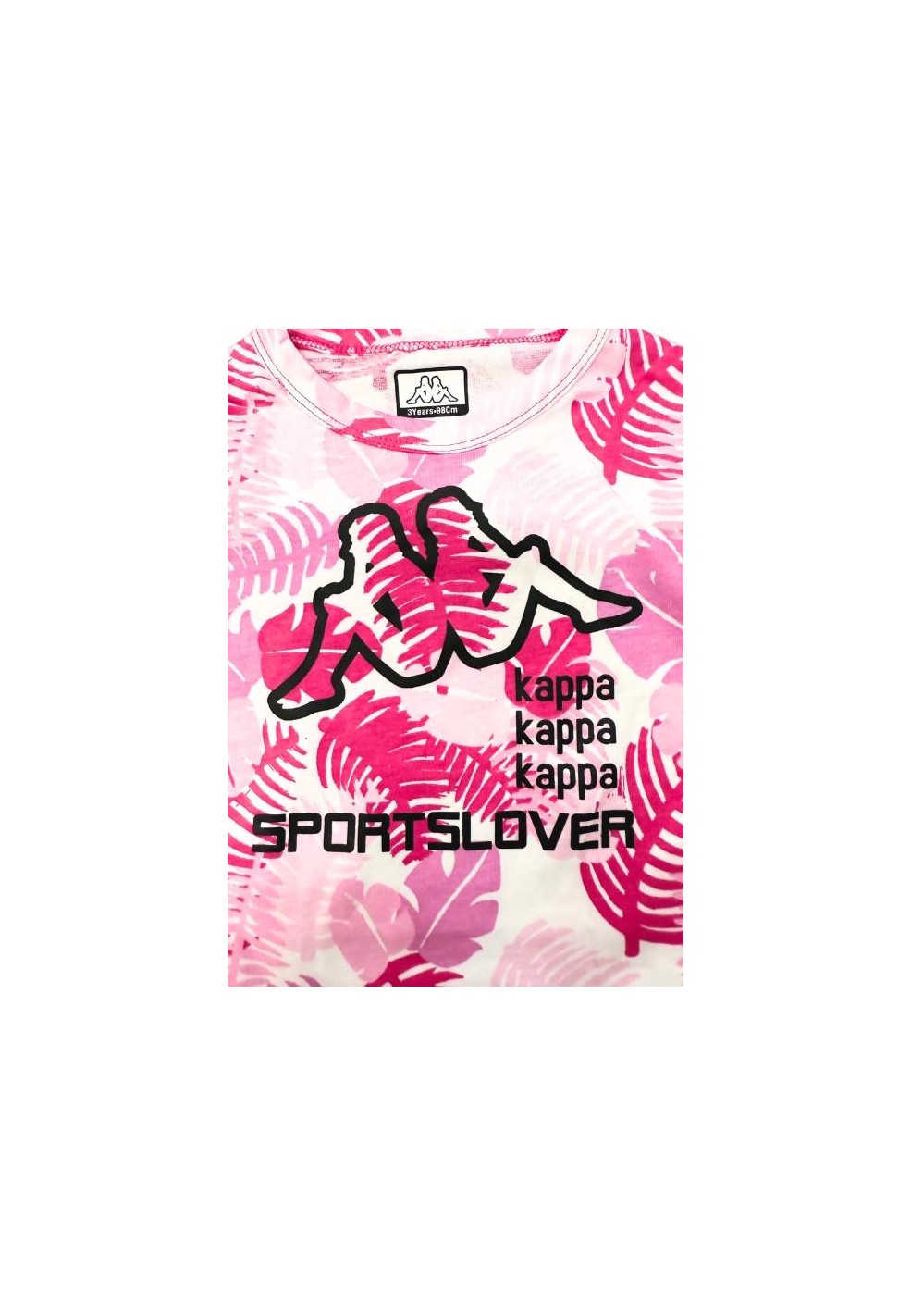 Completo per bambina rosa Barbie è una scelta divertente e piena di stile. La t-shirt, di un vivace rosa intenso, è arricchita da una fantasia tropicale: foglie stilizzate e astratte, in tonalità rosa e viola che si armonizzano perfettamente con lo sfondo. Sul davanti, il design si completa con il logo "Kappa" ripetuto tre volte e la scritta "SPORTSLOVER" in nero, che aggiungono un tocco moderno e sportivo al capo.